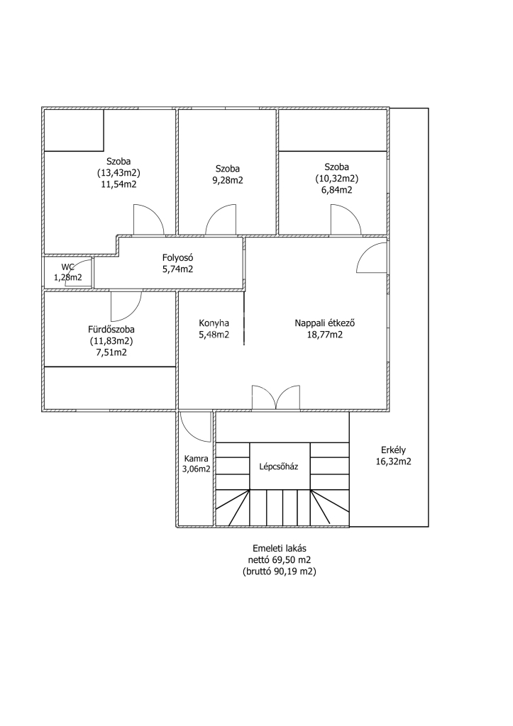 A lakás egy családi ház első emeletén helyezkedik el, és három különálló szobával rendelkezik, ideális választás lehet akár munkatársak, diákok számára is.